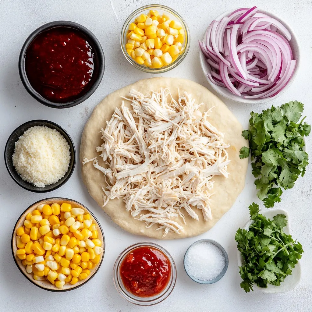 The main ingredients in BBQ Ranch Chicken Pizza are simple and tasty. You start with a pre-made pizza crust. This saves time and makes it easy. The next key item is cooked chicken breast. I like to use shredded chicken for good texture.