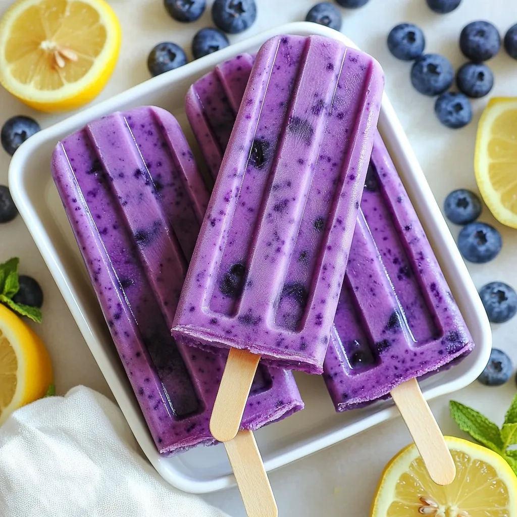 Refreshing popsicles made with fresh blueberries and lemon juice, perfect for a hot day.