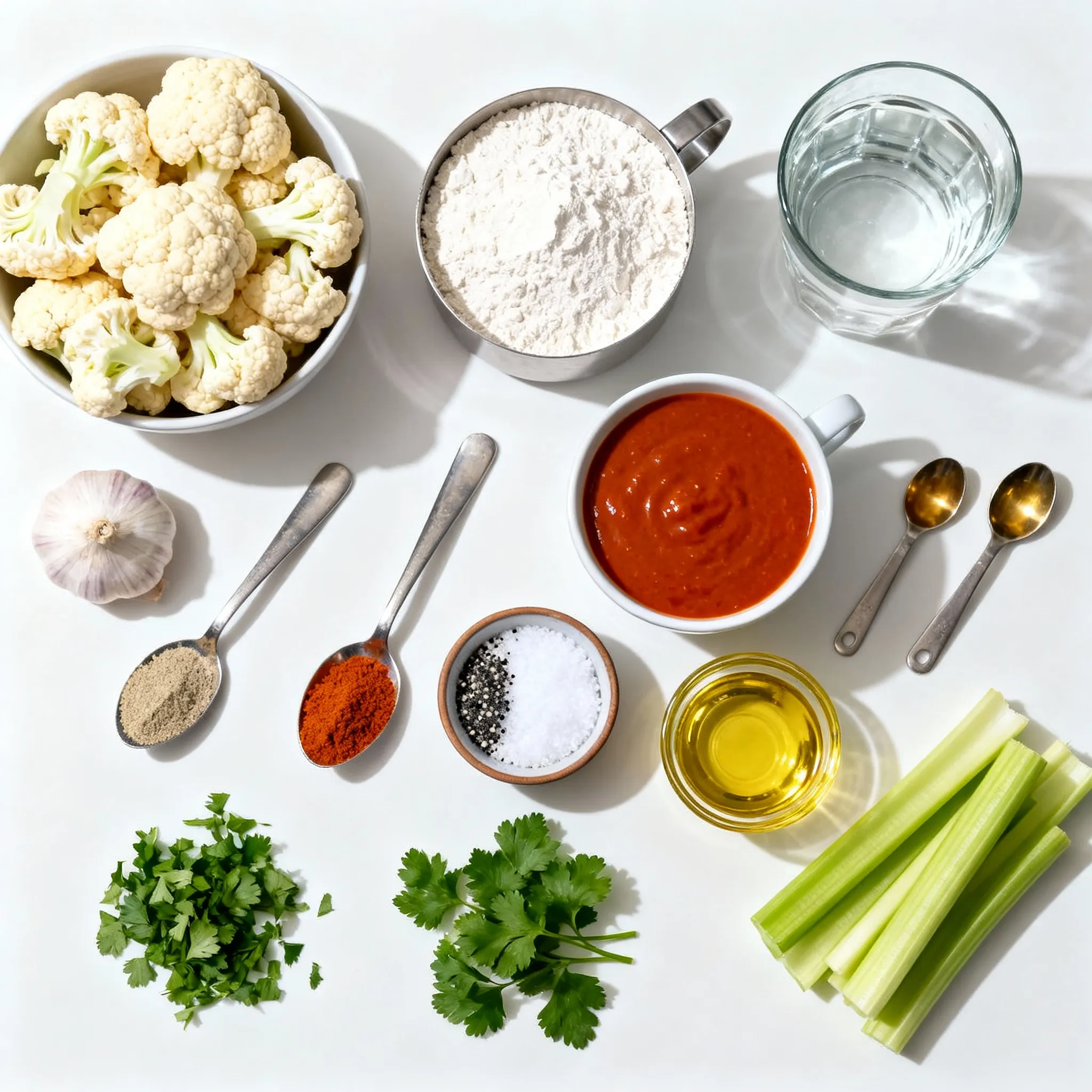 To make these bites, I start with a large head of cauliflower. I cut it into small florets. This size helps them cook evenly. Next, I prepare the batter. I mix flour, water, garlic powder, onion powder, and smoked paprika. I add salt and pepper for flavor. This batter coats the florets and gives them a crispy texture.