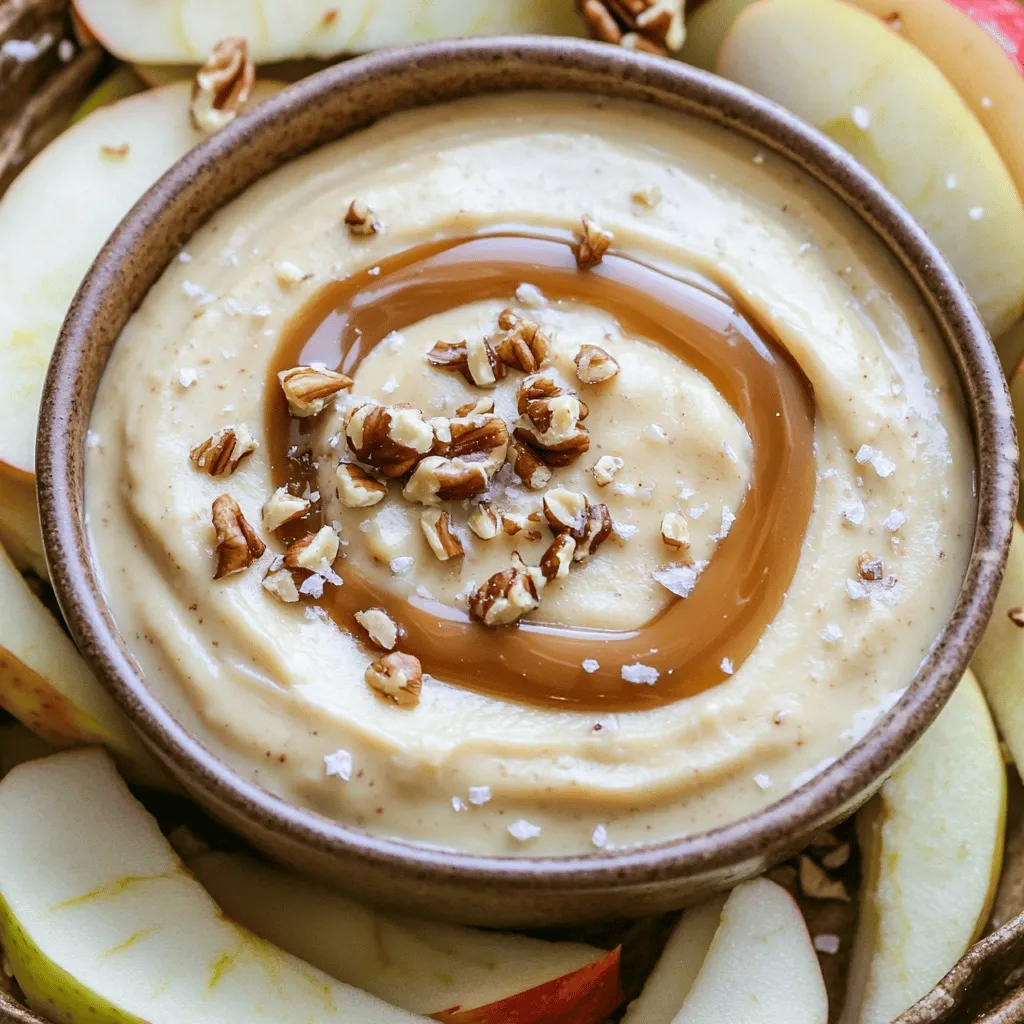 - 2 large apples (preferably Granny Smith or Honeycrisp), cored and sliced - 1 cup caramel sauce (store-bought or homemade) - 8 oz cream cheese, softened - 1/4 cup powdered sugar - 1 teaspoon pure vanilla extract - 1/2 teaspoon ground cinnamon - 1/3 cup chopped nuts (walnuts or pecans) - Sea salt for garnish (optional) Caramel apple dip is a fun treat. The sweet caramel and creamy cheese mix well. To start, you need fresh apples. I prefer Granny Smith apples for their tartness or Honeycrisp for sweetness. They hold up well when dipped. Next, the dip base is all about cream cheese. You want it soft to blend easily. The powdered sugar adds sweetness. The vanilla extract brings a warm flavor. Ground cinnamon adds a cozy touch. This mix is the heart of your dip. Then, we add caramel sauce. You can buy it or make your own. If you make your own, it can taste even better. Stir the caramel into the cream cheese mix. Make sure it’s creamy and smooth. Finally, we’ll top the dip with nuts. Chopped walnuts or pecans add crunch. A sprinkle of sea salt is optional but adds a nice contrast. This dip is not just tasty; it looks good too. Serve it in a bowl with apples around it. For the full recipe, check the instructions above. Enjoy your creamy indulgence! To start, gather your ingredients. In a medium bowl, combine the softened cream cheese, powdered sugar, pure vanilla extract, and ground cinnamon. Use an electric mixer on medium speed. Mix until you get a smooth consistency, about one to two minutes. This base is the heart of your dip. It should be creamy and rich. Next, slowly add in the caramel sauce. Reserve about a quarter cup for later. Keep mixing until everything blends well. Make sure no lumps remain in the mixture. This step is key for a silky dip. The caramel adds sweetness and a lovely texture. Now it’s time to bring it all together. Carefully transfer your cream cheese and caramel mixture into a nice serving dish. Spread it evenly for a great look. Drizzle the reserved caramel sauce on top for an added treat. Then sprinkle the chopped nuts over the caramel. This adds crunch and flavor. If you want, sprinkle a pinch of sea salt on top. This will enhance the sweet flavor. Serve immediately with apple slices for dipping. Enjoy this smooth and creamy indulgence! For the full recipe, check the details above. To make your caramel apple dip shine, use a decorative platter for serving. A beautiful display makes the dip more inviting. Place the apple slices around the dip for a stunning look. You might also want to add some extra chopped nuts on top. A light dusting of cinnamon adds an extra touch of flair. The right apples can make a big difference. I suggest using Granny Smith or Honeycrisp apples. They add a nice crispness to each bite. For the dip's texture, ensure your cream cheese is softened before mixing. This helps achieve a smooth and creamy consistency. Mix it well, so there are no lumps. This dip goes well with many snacks. Try pairing it with pretzels for a sweet and salty combo. Cookies also make a great match. If you want to explore more, other fruits work well too. Slices of pears or bananas can bring new flavors. Each option adds its own twist to your caramel apple dip experience. {{image_4}} You can make your caramel apple dip even more exciting! Try adding chocolate or peanut butter. For a chocolate twist, mix in chocolate chips or melted chocolate. This will give it a rich flavor that pairs well with apples. If you choose peanut butter, blend in creamy peanut butter for a nutty taste. Both options make the dip richer and more indulgent. You can also play with spices. Adding nutmeg or pumpkin spice can change the flavor profile. A sprinkle of nutmeg gives a warm, cozy feel. Pumpkin spice adds a festive touch, perfect for fall gatherings. These simple changes can make your dip unique and enjoyable. If you have dietary needs, you can still enjoy this dip. To make it gluten-free, use gluten-free caramel sauce and check the labels on your nuts. For a vegan option, replace cream cheese with a vegan cream cheese alternative. You can also use maple syrup instead of caramel for a sweet flavor. For health-conscious readers, consider low-sugar or sugar-free versions. Use sugar-free caramel sauce and a sugar substitute for the cream cheese mixture. This way, you can enjoy your dip without the extra sugar. Seasonal ingredients can add fun to your dip. For fall, add graham crackers for dipping. They give a nice crunch and fit the season's theme. You can also mix in chopped dried fruits like cranberries or raisins for a festive touch. Incorporating seasonal fruits can elevate the flavor. Think about adding slices of pears or figs in late summer. These fruits pair well with caramel and make the dip even more delicious. Use what’s in season to keep flavors fresh and exciting. For the full recipe, check out the Caramel Apple Delight Dip. To store leftover caramel apple dip, place it in an airtight container. Make sure to cover it well. This way, it stays fresh longer. You can keep it in the fridge for up to five days. If you see any change in color or smell, it is best to throw it out. Caramel apple dip can be frozen, but the texture may change. If you freeze it, use a freezer-safe container. It is best to consume it within three months for the best taste. When you're ready to enjoy it, thaw it in the fridge overnight. Once thawed, give it a good mix before serving. Serving temperature can change the flavor. Chilled dip is refreshing and sweet. Room temperature dip is creamy and rich. I recommend serving it at gatherings based on the season. In hot weather, chilled is nice. In cooler weather, room temperature adds warmth. Enjoy the flavors that work best for you! To make homemade caramel sauce, you need just a few ingredients. Start with: - 1 cup granulated sugar - 6 tablespoons unsalted butter - 1/2 cup heavy cream - 1 teaspoon vanilla extract - A pinch of salt 1. Heat the sugar: In a