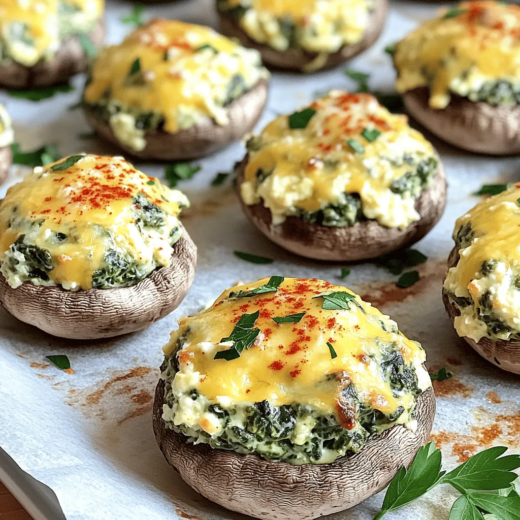 These ingredients come together to create a delicious blend of flavors. The mushrooms serve as a perfect vessel for the creamy filling. Spinach adds a fresh touch, while the cheeses provide richness.