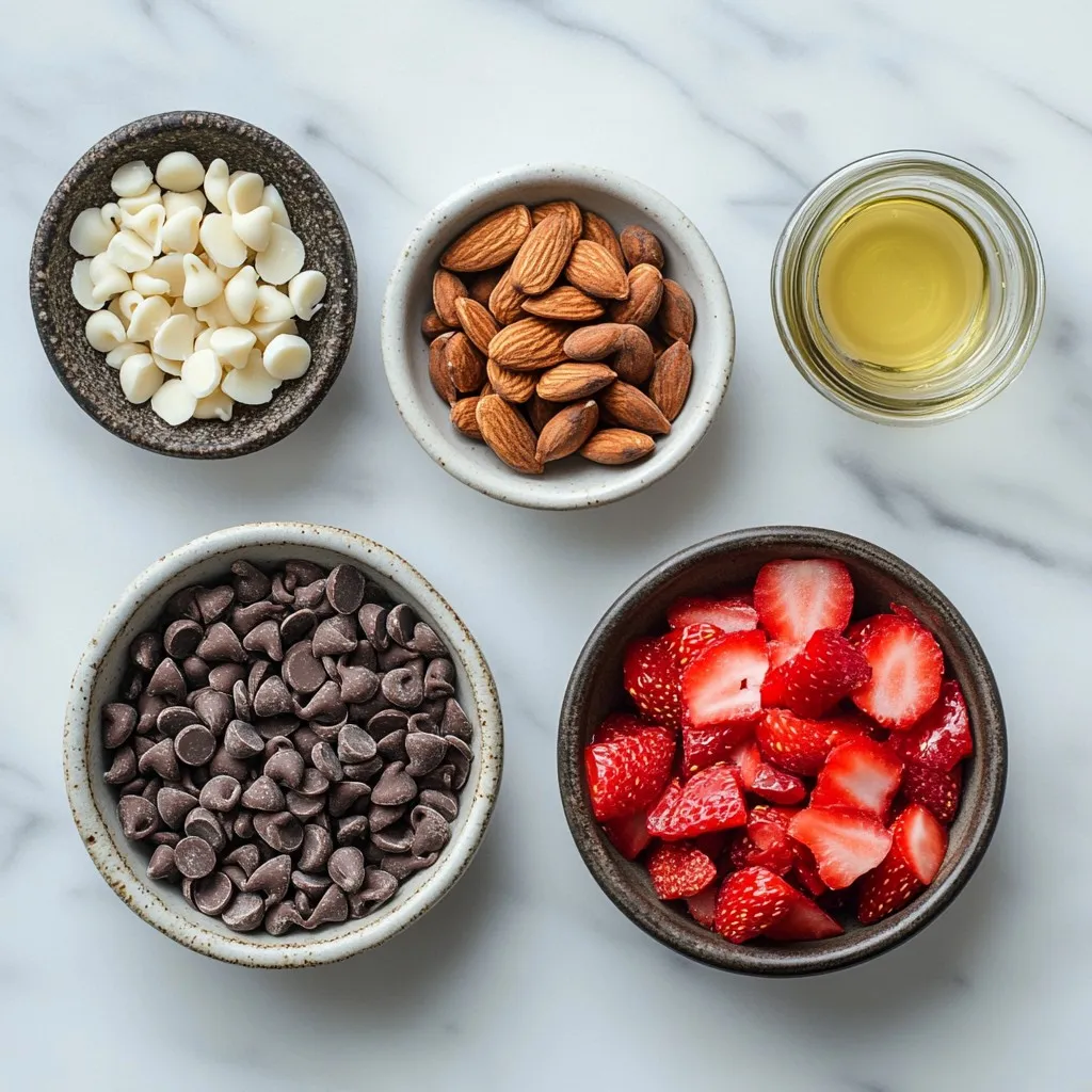 The heart of this recipe lies in the balance of flavors and textures. Dark chocolate chips make a rich base. White chocolate chips add sweetness. Freeze-dried strawberries give a fruity crunch. Roasted almonds add a nice nutty flavor and a bit of crunch. A sprinkle of sea salt enhances the taste.