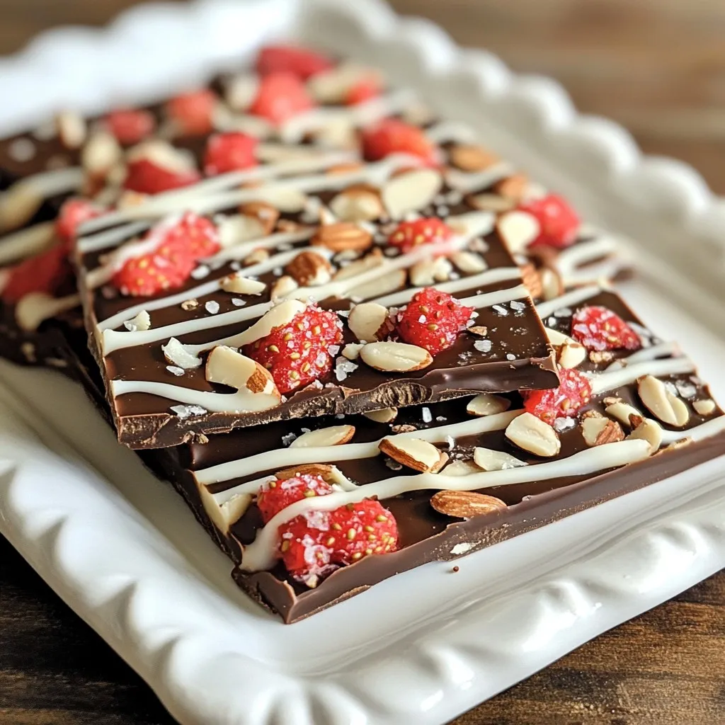 You now know how to make delicious chocolate-covered strawberry bark. The main ingredients include dark and white chocolate chips, freeze-dried strawberries, and roasted almonds. You learned the key steps, from melting chocolate to chilling the bark. Remember the tips for a smooth finish and fun variations. Store your bark in an airtight container for the best taste. Enjoy this tasty treat and share it with others. I hope you find joy in making and savoring your own chocolate bark creatio