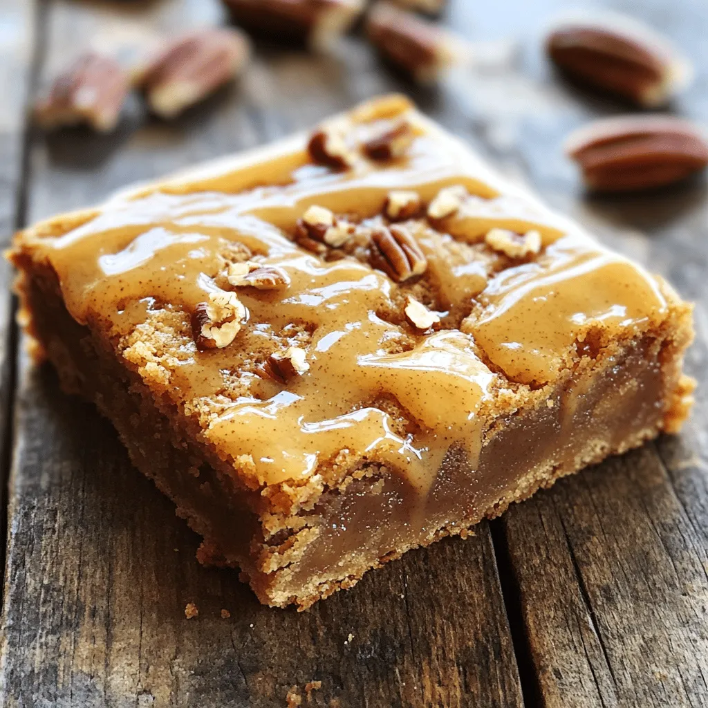 ![To make your cinnamon roll blondies, you will need: - 1 cup unsalted butter, melted - 1 cup packed brown sugar - 1/2 cup granulated sugar - 2 large eggs - 2 teaspoons vanilla extract - 2 cups all-purpose flour - 1 teaspoon baking powder - 1/2 teaspoon baking soda - 1/2 teaspoon salt - 2 teaspoons ground cinnamon - 1/2 cup chopped pecans (optional) These ingredients come together to create a rich and soft base. The melted butter gives a nice depth of flavor. The brown sugar adds moisture and sweetness. Eggs help bind everything, while the baking powder and soda give the blondies a lovely lift. To top your blondies with a sweet glaze, you will need: - 1 cup powdered sugar - 2 tablespoons milk - 1/2 teaspoon vanilla extract - 1/2 teaspoon ground cinnamon The glaze is simple yet adds a delightful finish. Powdered sugar gives it that nice sweetness. Milk helps to create a smooth texture. Vanilla and cinnamon add that classic flavor we all love. Feel free to get creative! Here are some fun ideas: - Chopped nuts like walnuts or almonds - Mini chocolate chips for a sweet twist - A sprinkle of sea salt for contrast - A dusting of extra cinnamon on top These add-ins can enhance the flavor and texture of your blondies. Don’t be afraid to mix and match! You can find more details in the [Full Recipe]. Start by preheating your oven to 350°F (175°C). Grab a 9x13-inch baking pan. Lightly grease it with butter or cooking spray. Line the bottom with parchment paper. Let some paper hang over the edges. This helps you lift the blondies out later. In a large bowl, mix 1 cup of melted butter, 1 cup of brown sugar, and 1/2 cup of granulated sugar. Use a whisk to blend until smooth. Add 2 large eggs one at a time. Mix well after each egg. Then, pour in 2 teaspoons of vanilla extract and stir until combined. In another bowl, combine 2 cups of all-purpose flour, 1 teaspoon of baking powder, 1/2 teaspoon of baking soda, 1/2 teaspoon of salt, and 2 teaspoons of ground cinnamon. Whisk these dry ingredients together. Gradually add the dry mix to the wet mix. Stir gently until combined. If you want nuts, fold in 1/2 cup of chopped pecans now. Pour the blondie batter into your prepared pan. Spread it evenly with a spatula. For the cinnamon swirl, mix 1 tablespoon of cinnamon with 3 tablespoons of brown sugar. Sprinkle this over the batter. Use a knife or skewer to swirl it gently. Don't overdo it; you want pretty marbled patterns. Now you're ready to bake! Follow the full recipe for the next steps, as your blondies will be warm and gooey. Enjoy the sweet, cinnamon aroma filling your kitchen! To get soft and chewy blondies, don’t overmix the batter. Mix just until you see no flour. This keeps the texture light. Bake until a toothpick comes out clean, but not too long. If you bake too long, they become dry. If you want less sweetness, cut back on the granulated sugar. You can also add a pinch of salt to balance flavors. For a richer taste, swap some brown sugar with maple syrup. This adds a unique twist. Serve these blondies warm, drizzled with the cinnamon glaze. They are great with a scoop of vanilla ice cream. For a fun twist, pair them with coffee or tea. You can also sprinkle extra cinnamon or chopped nuts on top for a nice touch. For the full recipe, check out the detailed instructions above! {{image_4}} You can easily change the taste of your cinnamon roll blondies. Add a pinch of nutmeg for warmth. Try mixing in some chocolate chips for a sweet twist. A splash of maple syrup gives a rich flavor. You can also use different nuts, like walnuts or almonds. Each option makes your blondies unique and fun. Want to make these blondies gluten-free? Use almond flour or a gluten-free blend instead of all-purpose flour. For a vegan version, replace the butter with coconut oil. You can use flax eggs instead of regular eggs. These swaps keep the blondies tasty and kind for everyone. Toppings can take your blondies to a new level. Try a cream cheese frosting for a creamy touch. You can sprinkle chopped fruits, like apples or bananas, on top. For a crunchy finish, add crushed graham crackers or caramel bits. Each topping adds charm and flavor, making them extra special. Check out the Full Recipe for more ideas! To keep your cinnamon roll blondies fresh, store them in an airtight container. Use parchment paper between layers to prevent sticking. Keep them at room temperature for up to three days. For longer storage, refrigerate them. This helps maintain their soft texture. If you want to enjoy them later, freezing is a great option. To reheat your blondies, preheat your oven to 350°F. Place the blondies on a baking sheet. Cover them with foil to keep them moist. Heat for about 10 minutes. You can also use the microwave. Heat them for 10-15 seconds to warm them up. Avoid overheating, or they may become dry. To freeze cinnamon roll blondies, first cool them completely. Cut them into squares. Wrap each piece tightly in plastic wrap. Then, place the wrapped blondies in a freezer bag. They can stay frozen for up to three months. When ready to eat, thaw them in the fridge overnight. Enjoy them at room temperature or reheat as desired. For the full recipe, refer to the earlier section. Cinnamon roll blondies are delicious treats that blend soft blondie dough with cinnamon swirls. They are chewy, sweet, and have a warm flavor. You can enjoy them warm or cool. The cinnamon glaze adds the perfect touch of sweetness. Yes, you can easily make these blondies without nuts. Just skip the chopped pecans in the recipe. The blondies will still taste great. You can also add other fun mix-ins, like chocolate chips or dried fruit. To keep your blondies moist, do not overbake them. Check for doneness around 25 minutes. The toothpick should come out with a few crumbs but not wet batter. Also, let them cool in the pan for at least 10 minutes before transferring them. Cinnamon roll blondies stay fresh for about 3-4 days at room temperature. Stor