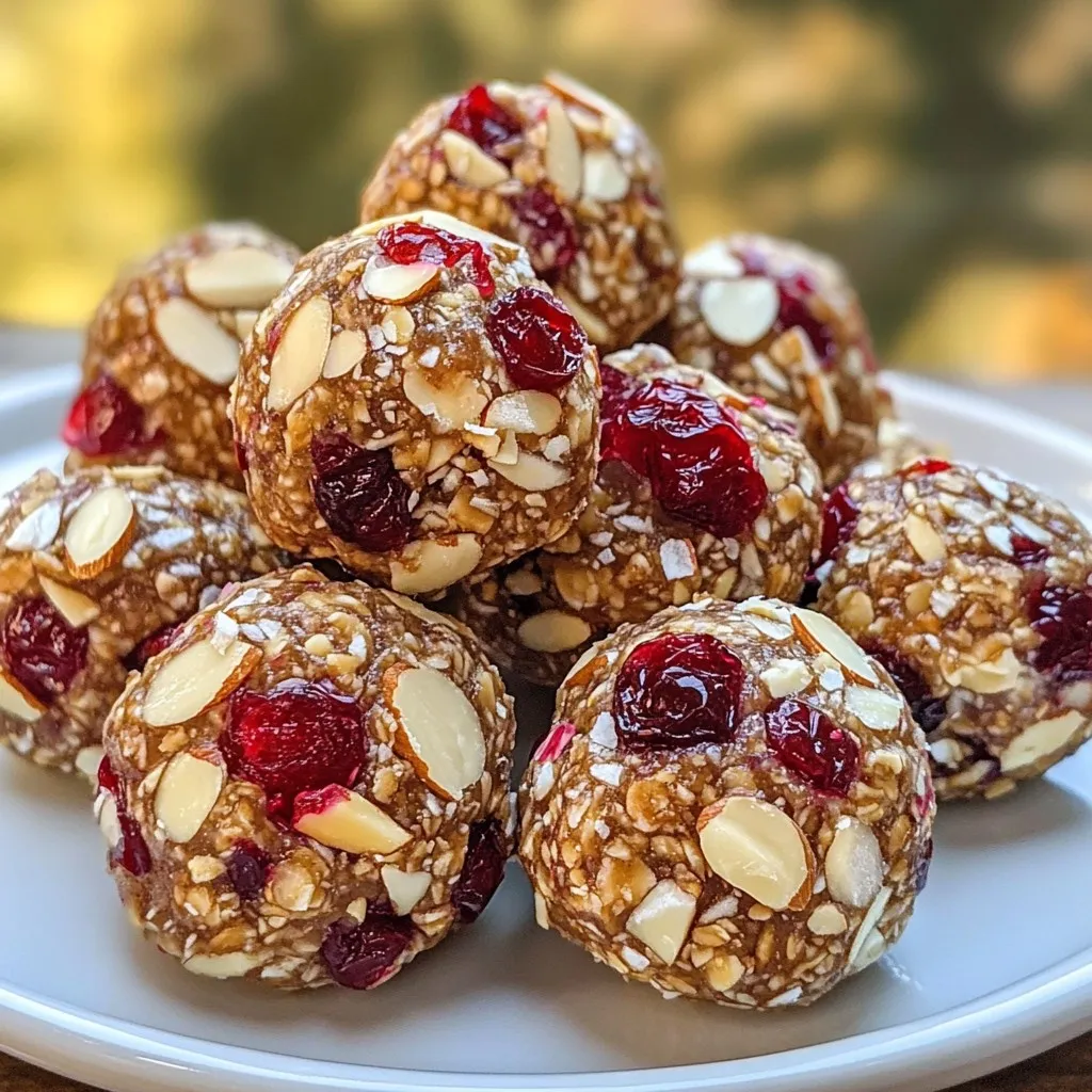 Delicious and nutritious energy bites made with oats, almond butter, and dried cranberries.