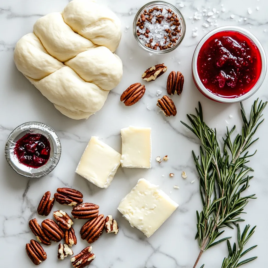 These ingredients work great together. The creamy Brie melts beautifully. The tart cranberry sauce adds a burst of flavor. Honey brings sweetness, making each bite special. Chopped pecans give a nice crunch, while rosemary adds fresh taste. Salt and pepper enhance all these flavors.