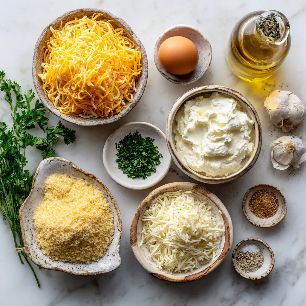 To make the cheese mixture, grab a large mixing bowl. First, add 2 cups of shredded cheese. I like to use a mix of sharp cheddar and stretchy mozzarella for great taste. Next, add 1 cup of softened cream cheese. Mix these cheeses until they blend smoothly. Then, add 2 tablespoons of finely chopped parsley, 1 teaspoon of garlic powder, and 1 teaspoon of onion powder. Don’t forget to sprinkle in some salt and pepper to taste. Stir everything until it is well combined.