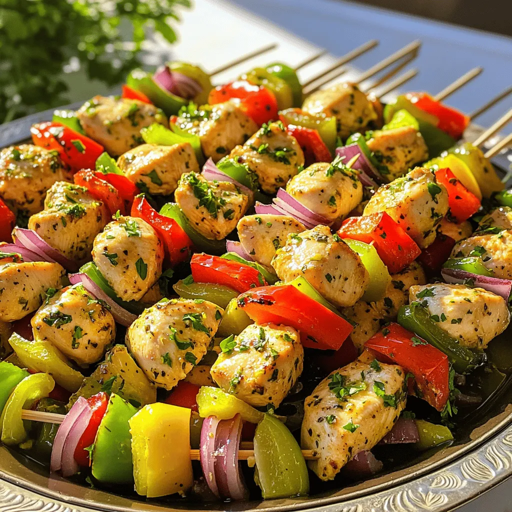 ![For my easy Greek chicken skewers, I use simple, fresh ingredients. The main star is: - 1.5 lbs boneless, skinless chicken breasts, cut into 1-inch cubes - 3 tablespoons olive oil - Zest and juice of 1 large lemon These ingredients create a tasty marinade. The chicken absorbs all the flavors from the olive oil and lemon. Adding colorful veggies makes these skewers even better. I like to include: - 1 red bell pepper, cut into 1-inch pieces - 1 green bell pepper, cut into 1-inch pieces - 1 red onion, cut into wedges The bell peppers and onion not only add flavor but also make the skewers look great. The right herbs and spices elevate the dish. I use: - 2 teaspoons dried oregano - 2 teaspoons garlic powder - 1 teaspoon onion powder These herbs and spices bring a classic Greek taste. They are simple yet powerful. For the full recipe, check out the details in the recipe section. To make the marinade, mix olive oil, lemon zest, lemon juice, oregano, garlic powder, onion powder, paprika, salt, and pepper in a large bowl. This blend creates a bright and zesty flavor. Each ingredient plays a role, enhancing the chicken's taste. Marinating the chicken is crucial. Let it sit for at least 30 minutes or up to 2 hours. This time allows the flavors to soak in, making your skewers delicious. Before you start grilling, prepare the skewers. If you use wooden skewers, soak them in water for 30 minutes. This step helps prevent burning on the grill. Once soaked, you can thread the chicken and vegetables onto the skewers. Alternate chicken cubes with pieces of red and green bell peppers and red onion. This mix not only looks great but also adds flavor and color. Now it's time to grill! Preheat your grill to medium-high heat. This temperature ensures the chicken cooks evenly. Once the grill is hot, place the skewers on it. Cook them for about 10-12 minutes. Turn the skewers occasionally. You want to make sure the chicken reaches an internal temperature of 165°F (75°C). This step guarantees juicy and safe-to-eat skewers. After grilling, let them rest for a few minutes before serving. This helps the juices stay inside the meat, making each bite tender. For the complete recipe, check out the [Full Recipe]. To boost flavor, marinate your chicken for at least 30 minutes. For deeper taste, try to marinate for up to 2 hours. This allows the spices to soak in well. If you want to add some heat, consider adding red pepper flakes or a dash of cayenne pepper to your marinade. You could also use fresh herbs like thyme or rosemary for a unique twist. You can cook these skewers by grilling, broiling, or baking. Grilling gives a nice char, while broiling cooks them quickly under direct heat. Baking is great for easy indoor cooking. No matter the method, check for doneness by using a meat thermometer. The chicken should reach an internal temperature of 165°F (75°C) to ensure it's safe to eat. For a beautiful presentation, arrange the skewers neatly on a large platter. Drizzle them with extra olive oil for shine. Sprinkle fresh herbs like parsley on top to add color. Serve with tzatziki sauce and warm pita on the side for an inviting meal. These simple touches make your dish look gourmet and appeal to every guest. {{image_4}} You can easily make this dish vegetarian. Swap the chicken for firm tofu or hearty veggies. Tofu absorbs flavor well. Just marinate it like the chicken. You can use mushrooms, zucchini, or eggplant for a tasty twist. These options keep the dish light yet full of flavor. A yogurt-based marinade adds creaminess and tang. Mix plain yogurt with lemon juice and herbs for a new taste. You can also try using different herbs and spices. Basil, thyme, or rosemary can change the flavor profile. Experiment with your favorite seasonings to make each batch unique. Pair these skewers with a fresh Greek salad. The crunch of cucumbers and the bite of feta cheese complement the skewers. You can also serve them with warm pita bread. A side of tzatziki sauce adds a creamy touch. For a complete meal, add rice or quinoa to round it out. Enjoy exploring these variations! To store your Greek chicken skewers, place them in an airtight container. This keeps them fresh. Put the container in the fridge. The skewers last for about 3 to 4 days. If you want to keep them longer, freezing is a great option. You can freeze the skewers either before or after cooking. If freezing before cooking, marinate the chicken first. Place the marinated chicken and veggies on skewers, then wrap them in plastic wrap and foil. This method helps keep the flavors. If you freeze after cooking, let them cool down first. Then store in an airtight container. Frozen skewers can last for 2 to 3 months. To reheat your skewers, the oven is best. Preheat it to 350°F (175°C). Place the skewers on a baking sheet and cover with foil. This keeps the chicken moist. Heat for about 15 to 20 minutes. If you want a quicker method, use a microwave. Just be careful not to overheat. This can make the chicken dry. Enjoy your leftovers like they are fresh! For the full recipe, check out the earlier sections. Marinate chicken for at least 30 minutes, but 2 hours is best. This time lets the flavors soak in well. If you have time, overnight marination will make it even tastier. Yes, you can make the skewers ahead of time. Assemble them and wrap them with plastic wrap. Store them in the fridge for up to 24 hours before grilling. Just remember to soak wooden skewers first if you use them. You can use gas or charcoal grills. Gas grills heat up fast and allow for easy temperature control. Charcoal grills give your skewers a nice smoky flavor. Both work well, so choose what you prefer. Check the internal temperature. It should reach 165°F (75°C) for safe eating. You can also look for clear juices when you cut into the chicken. If the juices are pink, it needs more time. Greek chicken skewers are simple and tasty. We discussed the key ingredients, like chicken and vegetables,