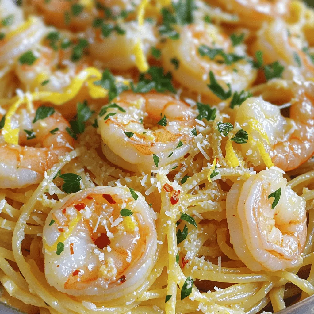 - 8 oz spaghetti or linguine - 1 lb large shrimp, peeled and deveined - 4 tablespoons unsalted butter, divided For this dish, I like to use spaghetti or linguine. Both types work well and hold the sauce nicely. Large shrimp add a sweet, meaty bite. Unsalted butter brings richness and depth to the dish. - 4 cloves garlic, minced - 1 teaspoon red pepper flakes (adjust to taste) - Zest of 1 lemon - 2 tablespoons fresh lemon juice Garlic is a must in this recipe. It gives the sauce a bold flavor. Red pepper flakes add heat, but you can adjust them to your taste. Lemon zest brightens the dish, while lemon juice adds a fresh, tangy kick. - 1/4 cup fresh parsley, finely chopped - Salt and freshly ground black pepper to taste - Grated Parmesan cheese for serving (optional) Chopped parsley adds color and freshness. Salt and pepper enhance all the flavors. Grated Parmesan cheese is optional, but it makes the dish even creamier and richer. Preparing the Water Start by filling a large pot with water. Add a generous amount of salt to the water. This step adds flavor to the pasta. Place the pot on the stove and turn the heat to high. Wait for the water to boil. Cooking Time for Al Dente Once the water boils, add 8 oz of spaghetti or linguine. Cook for about 8-10 minutes. You want it to be al dente, which means it should still have a slight bite. Before draining, save 1/2 cup of pasta water to use later. Drain the pasta and keep it warm in the pot. Melting the Butter In a large skillet, set the heat to medium. Add 2 tablespoons of unsalted butter. Wait until the butter melts and starts to sizzle. This is the perfect time to add the shrimp. Cooking Process of Shrimp Place 1 lb of large shrimp in the skillet in a single layer. Cook without stirring for 2-3 minutes. When the shrimp turn pink on one side, flip them over. Cook for another 1-2 minutes until they are fully opaque. Once done, remove the shrimp and set them aside on a plate. Adding Garlic and Red Pepper Flakes In the same skillet, add the remaining 2 tablespoons of butter. Let it melt. Stir in 4 minced garlic cloves and 1 teaspoon of red pepper flakes. Timing for Sautéing Sauté the garlic for about 1-2 minutes. Keep stirring until the garlic is fragrant and golden. Be careful not to burn it; burnt garlic will taste bitter. Mixing Shrimp and Pasta Next, return the cooked shrimp to the skillet. Add the drained pasta, along with the reserved pasta water. Also, add the lemon zest and 2 tablespoons of fresh lemon juice. Final Seasoning Tips Gently toss everything together. Make sure the pasta is well coated in the garlic sauce. Season with salt and freshly ground black pepper to taste. Presentation Tips To serve, remove the skillet from heat. Fold in 1/4 cup of chopped fresh parsley for a pop of color. Plate the pasta in shallow bowls while it's still hot. Serving Suggestions For an elegant touch, you can sprinkle some grated Parmesan cheese on top. Add extra lemon zest and parsley for a beautiful finish. Enjoy your Garlic Butter Shrimp Pasta! To make great garlic butter shrimp pasta, cook the pasta al dente. This means it should be firm but not hard. Al dente pasta has a nice bite. It also holds sauce well. Follow the package instructions for timing. Usually, it takes about 8-10 minutes. Water Reservoir Importance: Always save some pasta water. This water has starch, which helps the sauce stick. You only need about half a cup. Add it to the sauce when you mix in the pasta. It makes everything creamy and smooth. Avoiding Overcooked Shrimp: Shrimp cook fast. They can go from perfect to rubbery quickly. Cook them for 2-3 minutes on one side. When they turn pink, flip them. Cook for another 1-2 minutes. They should be opaque and firm, not chewy. Flavor Infusion Tips: For extra flavor, let the shrimp sit in the butter for a minute before you cook them. This adds richness. You can also marinate them in lemon juice and garlic for 15 minutes. This step boosts the taste even more. Adjusting Spice Level: Red pepper flakes give a nice kick. If you want less heat, use less. For more heat, add more. Taste as you go. This way, you find the right balance for your liking. Alternative Seasoning Suggestions: You can change the flavor by adding herbs. Fresh basil or thyme works well. You could also use a splash of white wine for depth. Experiment with different herbs and spices to make it your own! {{image_4}} You can make Garlic Butter Shrimp Pasta healthier with a few swaps: - Whole Wheat Pasta: This option adds fiber and nutrients. It keeps you full longer and gives a nutty taste. - Low-Carb Options: For a low-carb meal, try zucchini noodles or spaghetti squash. They are light and soak up flavors well. To give your dish a new twist, consider these flavor additions: - Adding Vegetables: Include spinach, cherry tomatoes, or bell peppers. They add color and nutrition. Try sautéing them with the shrimp for even more flavor. - Different Herbs: Swap parsley for basil or cilantro. Each herb brings its own unique taste. Fresh herbs enhance the dish and add brightness. If you want to switch up the seafood, here are some ideas: - Substituting Shrimp: You can use scallops or crab instead. Both options cook quickly and taste great in garlic butter sauce. - Mixed Seafood Ideas: Combine shrimp, mussels, and clams for a seafood medley. This mix adds a variety of textures and flavors. Just be sure to adjust cooking times for each type. How Long It Lasts You can keep garlic butter shrimp pasta in the fridge for about 3 days. Store it in an airtight container to keep it fresh. Proper Storage Techniques Make sure the pasta has cooled before you store it. Use a container that seals well. You can also cover it tightly with plastic wrap. This helps keep the flavors intact. Freezing the Dish To freeze garlic butter shrimp pasta, let it cool completely. Place it in a freezer-safe container or bag. Make sure to remove as much air as possible. It can last for up to 2 months in the freez