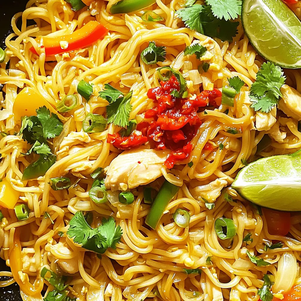 Garnishing is important. Fresh cilantro adds color and freshness. Lime wedges give a zesty kick, balancing the flavors of the dish. These finishing touches make your Garlic Chili Chicken Noodles pop!