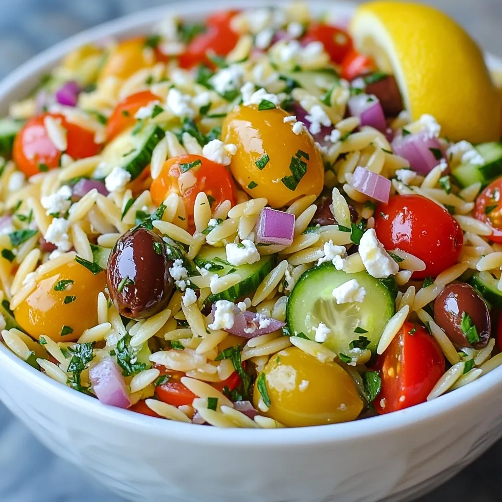 A refreshing and vibrant orzo salad packed with Mediterranean flavors.