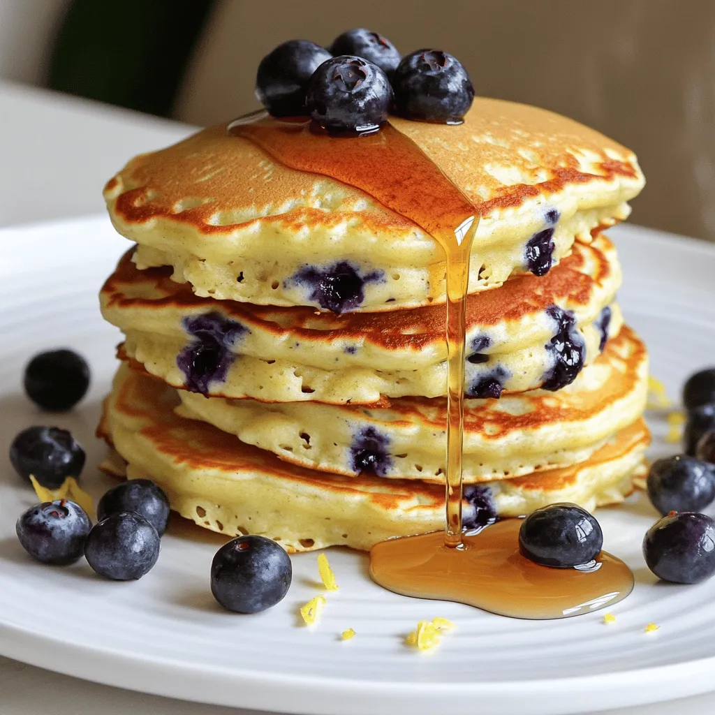 ![To make delicious Lemon Blueberry Ricotta Pancakes, you need a few simple ingredients. Each one plays an important role in creating that light and fluffy texture. Here’s what you will gather: - 1 cup ricotta cheese - 1 cup all-purpose flour - 2 tablespoons granulated sugar - 1 teaspoon baking powder - 1/2 teaspoon baking soda - 1/4 teaspoon fine sea salt - 3/4 cup whole milk - 2 large eggs, at room temperature - Zest of 1 lemon (about 1 tablespoon) - 2 tablespoons freshly squeezed lemon juice - 1 cup fresh blueberries (preferably small and plump) - Butter or vegetable oil, for cooking These ingredients work together to create a wonderful balance of flavors. The ricotta adds creaminess, while the lemon gives a fresh zing. The blueberries burst with sweetness, making each bite a treat. You can find the Full Recipe to guide you through the steps of making these pancakes. To start, I mix the wet ingredients. In a large bowl, I add ricotta cheese, whole milk, eggs, lemon zest, and lemon juice. I use a whisk to blend these until smooth. It is very important to ensure no lumps remain in the ricotta mixture. This step helps the pancakes become light and fluffy. Next, I focus on the dry ingredients. In a different bowl, I whisk together all-purpose flour, granulated sugar, baking powder, baking soda, and fine sea salt. Measuring accurately is key here. A small mistake can change the texture of the pancakes. Now it’s time to combine the mixtures. I slowly add the dry ingredients to the ricotta mixture. I stir gently with a spatula. It’s okay if some small lumps remain. Overmixing can make the pancakes tough, so I am careful here. After mixing, I carefully fold in the fresh blueberries, keeping their shape intact. Their burst of flavor is essential. For cooking, I preheat a non-stick skillet over medium heat. I lightly grease the surface with butter or vegetable oil. For each pancake, I pour about 1/4 cup of batter onto the skillet. I cook them for 3-4 minutes. When bubbles form on the surface and the edges look set, they are ready to flip. Using a spatula, I turn the pancakes and cook for another 2-3 minutes. They should be golden brown and cooked through. I repeat this until all the batter is used. If needed, I add more oil or butter between batches. Check out the Full Recipe for more details! To make your lemon blueberry ricotta pancakes even tastier, try adding vanilla extract. Just a splash can boost the sweetness and depth of flavor. You can also experiment with spices like cinnamon or nutmeg. These spices add warmth and a hint of spice that complements the lemon and blueberries well. A key to fluffy pancakes is to avoid overmixing the batter. When you combine the wet and dry ingredients, stir gently. It is okay if a few small lumps remain. This will help keep your pancakes tender. The skillet temperature is also important. Preheat it to medium heat. Too hot, and the pancakes will burn; too cool, and they won’t cook evenly. Serve your pancakes warm with a variety of toppings. Fresh blueberries or a drizzle of maple syrup work wonders. You might also like whipped cream or a sprinkle of powdered sugar on top. For a savory twist, try serving them with crispy bacon or fresh fruit salad on the side. For the full recipe, be sure to check it out! {{image_4}} You can switch up the fruit in these pancakes. Strawberries or raspberries work great. Just chop them up and fold them in like you do with blueberries. You could also use banana slices. They add a sweet taste and nice texture. If you need gluten-free pancakes, try using alternative flours like almond or coconut flour. These flours can change the texture, so adjust the liquid as needed. For vegan pancakes, replace the eggs with flax eggs. Use almond milk or coconut milk for the dairy. You can create lemon poppy seed pancakes by adding poppy seeds to the batter. This adds a nice crunch and flavor. Another fun twist is to add chocolate chips. They melt and create a sweet surprise in every bite. For the [Full Recipe], check the main section. Enjoy experimenting with these fun variations! To store leftover pancake batter, pour it into an airtight container. Seal it tightly to keep air out. You can keep it in the fridge for up to two days. If you want to store it longer, freeze the batter. It will stay fresh for about a month in the freezer. Just remember to label the container with the date. Once you cook the pancakes, let them cool to room temperature. Place them in a single layer on a plate or baking sheet. You can refrigerate cooked pancakes for up to three days. For longer storage, stack the pancakes with parchment paper in between. Wrap them tightly in plastic wrap or foil and place them in the freezer. They will last for about two months. To reheat cooked pancakes, use the microwave for quick results. Heat them in 30-second intervals until warm. If you prefer, you can also reheat them in a toaster or a skillet. Just use low heat to avoid burning. Enjoy your delicious leftovers without losing any flavor! Yes, you can make these pancakes ahead of time. Store them in an airtight container. Place parchment paper between pancakes to prevent sticking. They can last in the fridge for up to three days. When you want to eat them, reheat in the microwave. Heat for about 30 seconds or until warm. If you don't have ricotta, use cottage cheese. Blend it to make it smoother. Cream cheese is another option, but it will change the flavor. Greek yogurt can also work; it adds tanginess. Each cheese brings a unique taste, so choose what you like best. To make fluffier pancakes, separate the egg yolks from the whites. Whip the egg whites until stiff peaks form. Fold them into the batter gently. Also, make sure your baking powder is fresh. This helps the pancakes rise better when cooking. Flipping pancakes can be tricky. Wait for bubbles to form on the surface. This means they are ready to flip. Use a wide spatula for better support. Gently slide it under