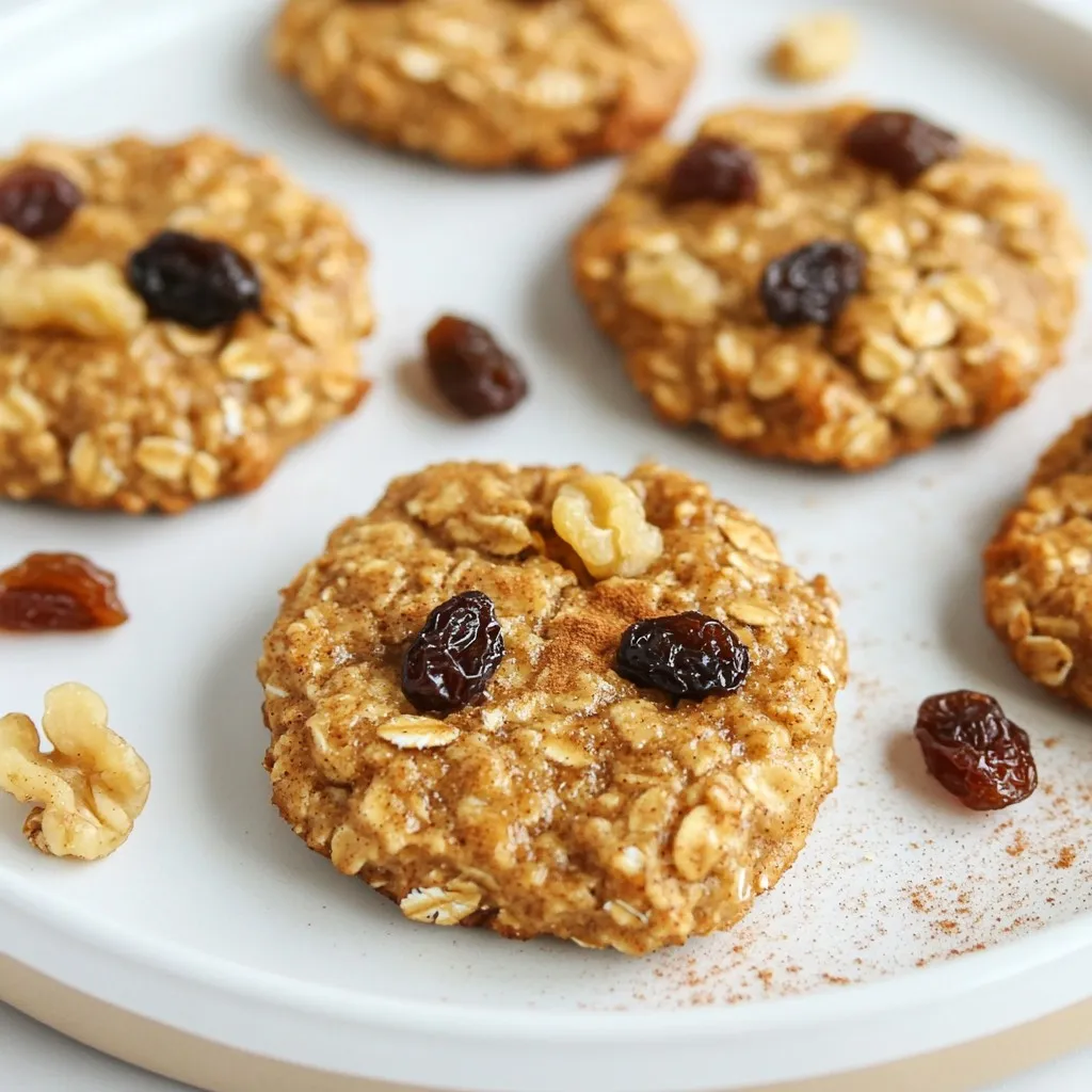 Delicious and healthy breakfast cookies made with oats, raisins, and optional walnuts and chocolate chips.