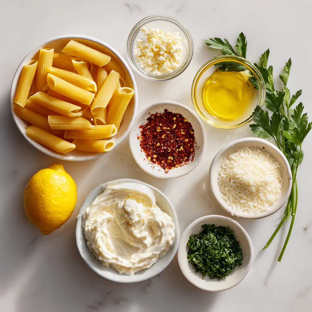 When I make this garlic penne, I always start with the main ingredients. The penne pasta is my base. It has the right shape to hold the sauce. I use 12 ounces for four servings. I finely mince six cloves of garlic. This adds depth and flavor. The unsalted butter and extra virgin olive oil help create a rich sauce. I use four tablespoons of butter and two tablespoons of oil to ensure a smooth mix.