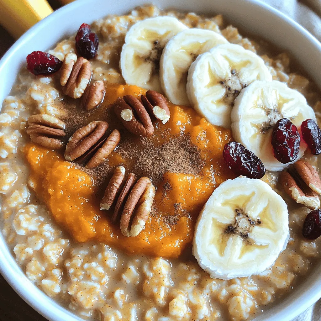 When serving your pumpkin oatmeal, use a large spoon to dish it out into bowls. Each serving should be warm and inviting. For toppings, add fresh fruit like banana slices or apple pieces. You can also add a scoop of yogurt for creaminess. If you like it sweeter, drizzle extra maple syrup on top.