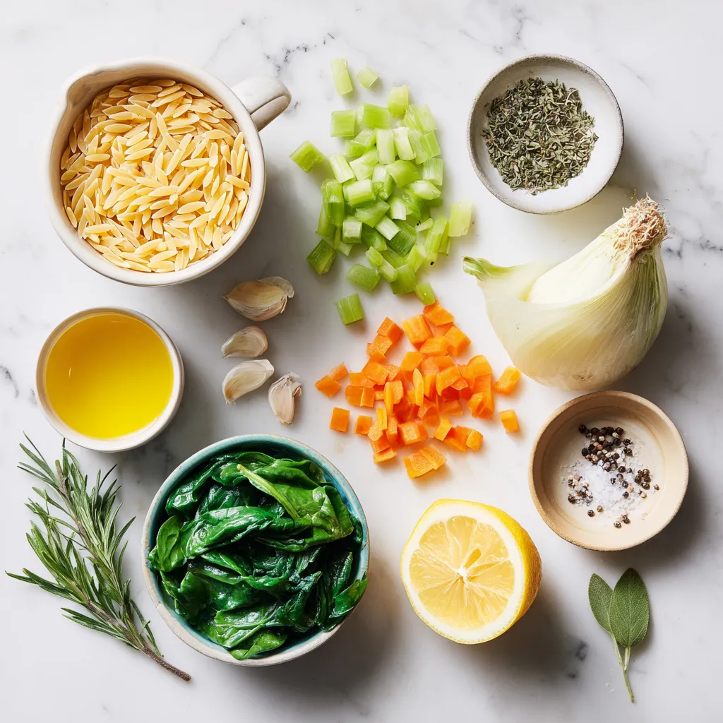 The ingredients for spinach orzo soup offer a nice balance of flavors and nutrients. Orzo pasta adds a fun texture, while fresh spinach brings in vitamins. The broth forms the soup’s base and adds depth.