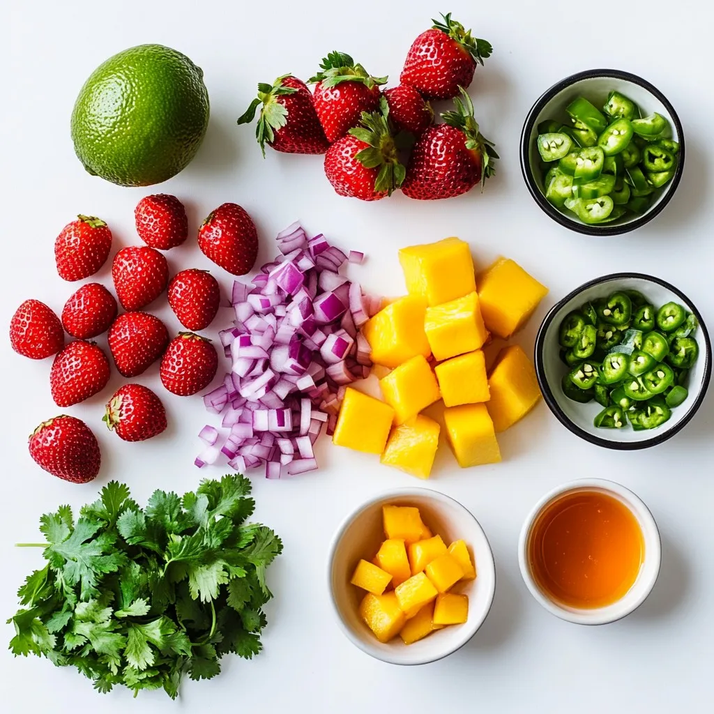 1. Dicing strawberries and mango: Start by hulking and dicing 1 cup of fresh strawberries. Cut them into small pieces so they mix well. For the mango, peel and dice 1 cup of ripe fruit into even cubes. This gives the salsa a nice, balanced texture.