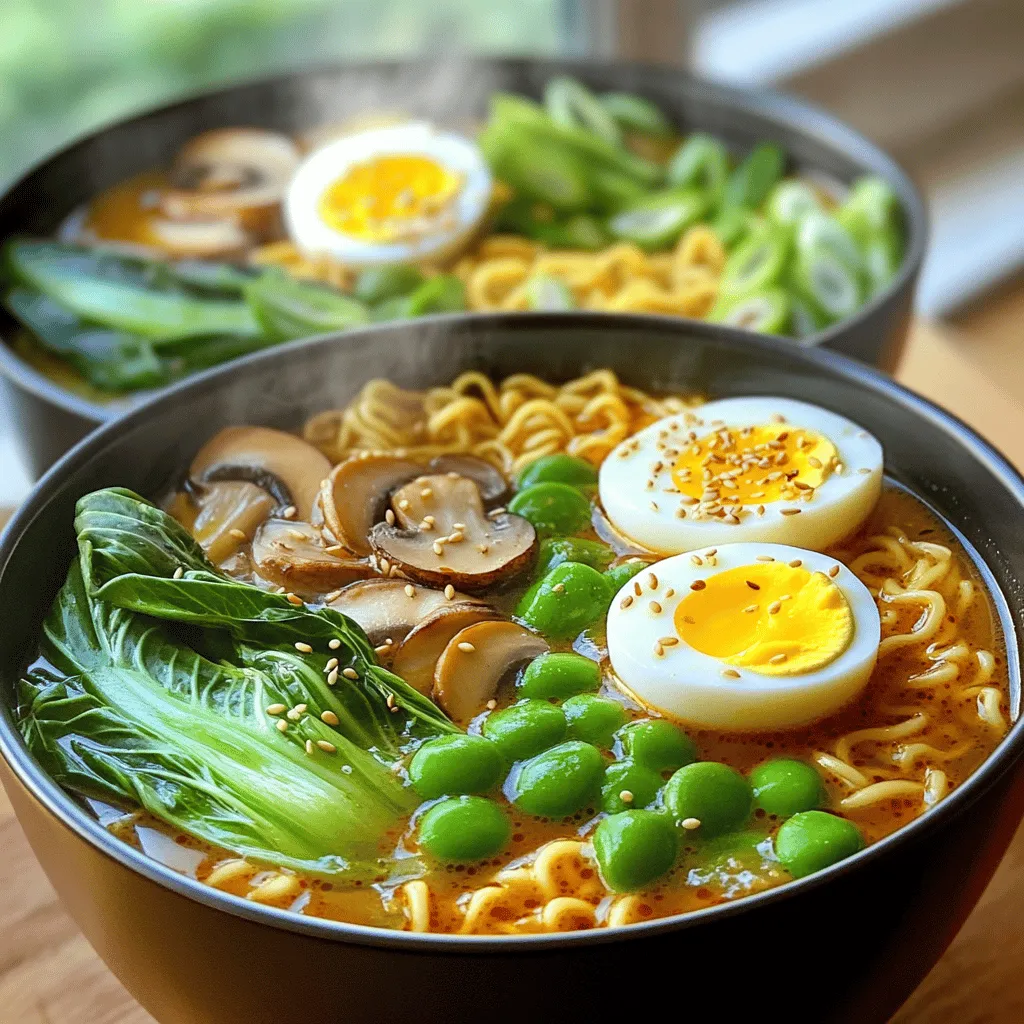 - 2 packs of instant ramen noodles (discard the seasoning packets) - 4 cups vegetable broth - 3 cloves garlic, minced - 2 tablespoons fresh ginger, grated - 1/4 cup sweet chili sauce - 2 tablespoons soy sauce - 1 tablespoon sesame oil - 1 cup baby bok choy, halved - 1 cup sliced mushrooms (shiitake or button) - 1/2 cup snap peas - 2 green onions, sliced (for garnish) - 1 tablespoon sesame seeds (for garnish) - Optional: 1 soft-boiled egg, sliced in half for topping For this Sweet Chili Garlic Ramen, I use simple and fresh ingredients. The ramen noodles form the base. I always choose instant noodles, but make sure to toss the seasoning packets. The vegetable broth brings depth and warmth. Garlic and ginger add a punch of flavor. The sweet chili sauce gives the broth a delightful sweetness. Soy sauce adds saltiness and umami. Sesame oil enriches the taste with its nutty flavor. Baby bok choy is my go-to for its crunch. For garnishes, I love using mushrooms and snap peas. They add texture and color. Green onions and sesame seeds make it look pretty and tasty. If you want something extra, a soft-boiled egg makes a great topping. You can find the Full Recipe to guide you through the cooking process. Enjoy the rich flavors and comforting warmth of this hearty meal! - Heat 1 tablespoon of sesame oil in a medium pot over medium heat. - Add 3 cloves of minced garlic and 2 tablespoons of grated ginger. Sauté them for about 1 minute. This step brings out their amazing flavors. - Pour in 4 cups of vegetable broth and raise the heat to bring it to a boil. - Once boiling, reduce the heat and stir in 1/4 cup of sweet chili sauce and 2 tablespoons of soy sauce. - Add 1 cup of sliced mushrooms, 1/2 cup of snap peas, and 1 cup of halved baby bok choy to the pot. - Let the broth simmer for 5 to 7 minutes. Cook until the veggies are tender but still bright. - In a separate pot, prepare 2 packs of instant ramen noodles according to the package instructions. - After cooking, drain the noodles and set them aside until the vegetables are ready. - Once the veggies are cooked, add the drained noodles to the simmering broth. - Stir gently for about 2 minutes. This lets the noodles soak up all the delicious flavors. - Ladle the hot ramen into deep serving bowls. - Garnish each bowl with sliced green onions and a sprinkle of sesame seeds. - If you like, add a soft-boiled egg, sliced in half, on top for extra richness. Enjoy your Sweet Chili Garlic Ramen! For the full recipe, click here. To make the best Sweet Chili Garlic Ramen, adjust the sweetness and spiciness. Add more chili sauce for heat or less for mildness. This lets you control the flavor to fit your taste. For the vegetables, cook them al dente. This keeps them crisp and bright, adding great texture to your dish. Serve your ramen in deep bowls for a stunning look. The broth should cover the noodles, and the veggies should peek through. Garnish with the sliced green onions and sesame seeds. Arrange them nicely for appeal. A soft-boiled egg on top adds elegance and flavor. Choose a medium pot for the broth and a separate pot for the noodles. This helps keep cooking simple. Use a garlic press to easily mince garlic. A vegetable peeler works well for ginger and other veggies. These tools make your cooking faster and more enjoyable. Feel free to check out the Full Recipe for more details! {{image_4}} Adding protein to Sweet Chili Garlic Ramen makes it heartier and more filling. You can use chicken, tofu, or shrimp. Here are some tips: - Chicken: Use cooked, shredded chicken. Add it in the last few minutes of cooking. This keeps it warm without overcooking. - Tofu: Choose firm tofu for the best texture. Cut it into cubes and sauté it in sesame oil until golden before adding to your broth. - Shrimp: Use peeled and deveined shrimp. Add it to the broth in the last 2-3 minutes of cooking. Cook until pink and opaque. For a vegetarian version, choose a rich vegetable broth. You can also add more veggies to boost flavor and color: - Broth: Use a mushroom broth for a deeper taste. You can make it by simmering dried mushrooms in water. - Veggies: Add carrots, bell peppers, or spinach. These will add flavor and nutrition. Stir them into the broth with the other vegetables. If you need a gluten-free option, choose the right noodles and adjust your sauces: - Noodles: Use rice noodles or gluten-free ramen. These can be found in most grocery stores. - Sauces: Replace soy sauce with tamari or coconut aminos. Make sure to check labels to avoid hidden gluten. Try these variations to make Sweet Chili Garlic Ramen your own! For the full recipe, check out the ingredients and steps listed above. To store leftover ramen, let it cool to room temperature. Place it in airtight containers to keep it fresh. I recommend using glass containers, as they do not absorb odors. This method helps maintain the flavor of your ramen. You can reheat ramen on the stovetop or in the microwave. For stovetop, add a little broth or water to a pan. Heat it on medium until hot. Stir gently. For the microwave, place ramen in a bowl. Add a splash of broth. Heat for 1-2 minutes. This keeps the noodles tender and tasty. Yes, you can freeze ramen! However, it is best to freeze the broth and noodles separately. This keeps the noodles from becoming mushy. You can also freeze vegetables, but add them fresh later. Store in freezer-safe bags or containers. Sweet Chili Garlic Ramen stays fresh for about three to four days in the fridge. Store it in an airtight container to keep it safe from other odors. When you’re ready to eat, just reheat it on the stove or in the microwave. The noodles may soften, but the flavors remain delicious. Yes, you can easily make this ramen vegetarian! Use vegetable broth instead of chicken broth. For extra flavor, add mushrooms and use soy sauce. You can also include tofu for protein and more texture. Baby bok choy and snap peas are great veggie choices, too. If you don’t have sweet