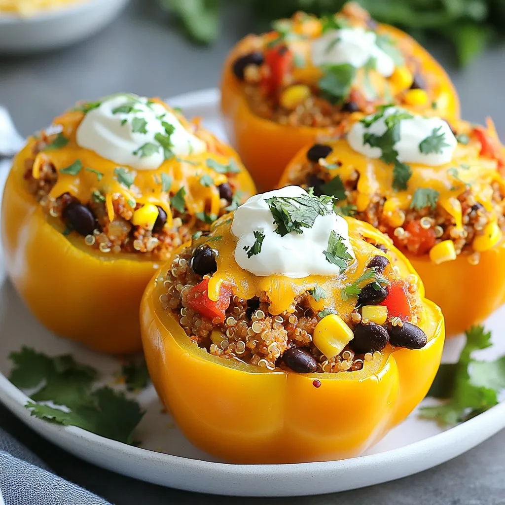 Using seasonal vegetables can make your dish shine. In summer, add grilled corn or zucchini for a fresh taste. In the fall, consider diced butternut squash or sweet potatoes. This adds warmth and flavor. You can also transform these stuffed peppers into a summer BBQ dish. Grill them instead of baking. This gives them a delicious smoky flavor and keeps your kitchen cool.